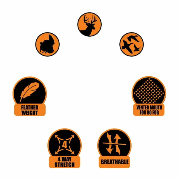 - Feather-Weight, breathable fabric for all-day comfort and face concealment.